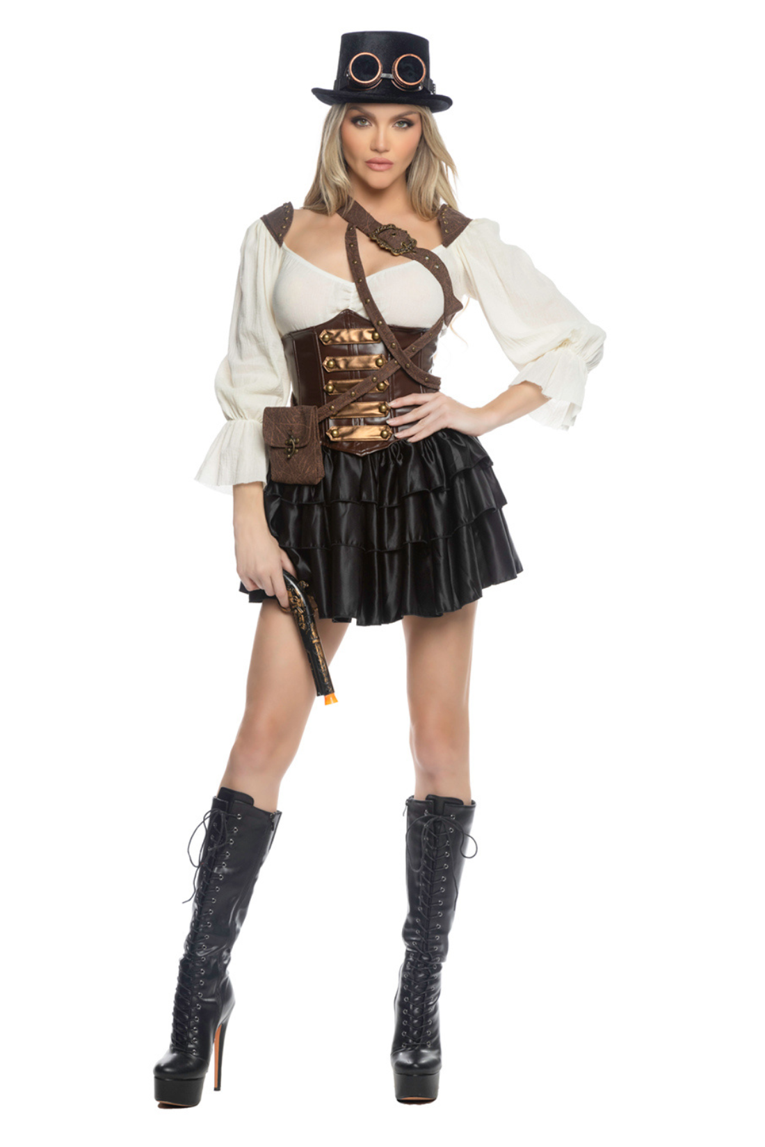 Step into a world of vintage charm and playful adventure with the 7 PC Steampunk Darling costume. This flirty ensemble blends Victorian elegance with industrial edge, featuring intricate details that make every piece come alive. Perfect for expressing your bold style and turning heads at any event, this outfit invites you to embrace your inner adventurer with a touch of sass and sophistication.