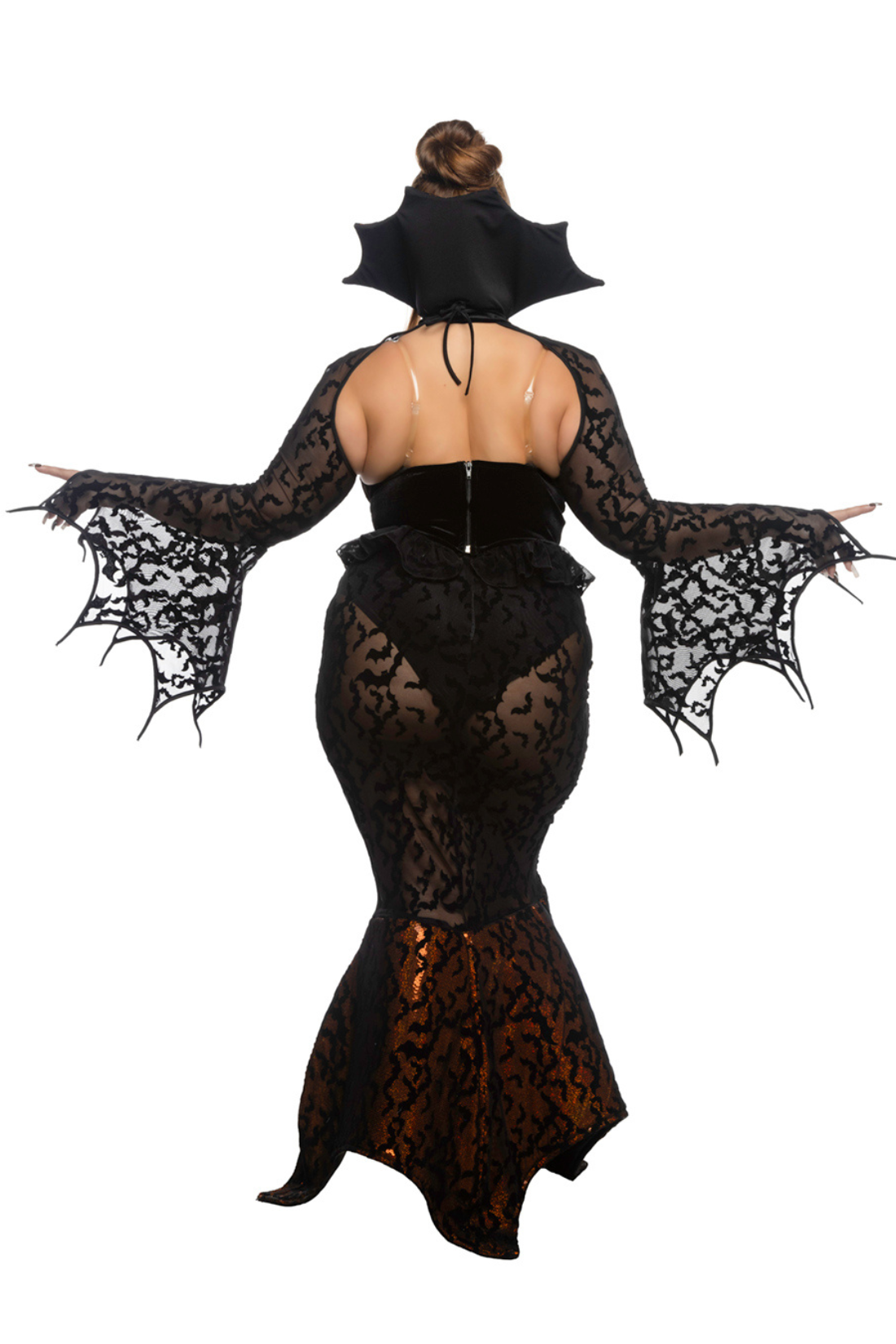 Channel your inner enchantress with the Transylvania Bat Temptress 5-piece costume. This seductive ensemble features bat-inspired accents that add a mysterious, playful edge to your look. Perfect for Halloween or any night you want to captivate, this costume lets you flutter into the spotlight with confident, flirty charm.