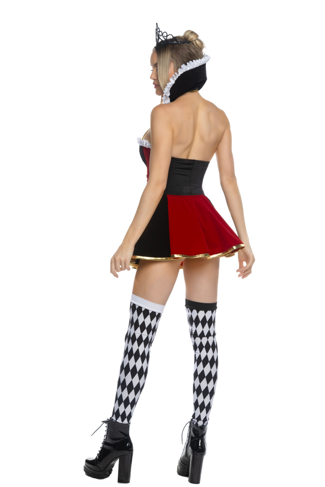 Step into the spotlight as the enchanting Wonderland Queen with this irresistible 4-piece costume. Designed to captivate, it combines bold, playful details with a flirtatious edge that’s perfect for making a statement. Whether you’re owning the party or turning heads at a themed event, this costume lets your confident, fun-loving side shine through effortlessly.